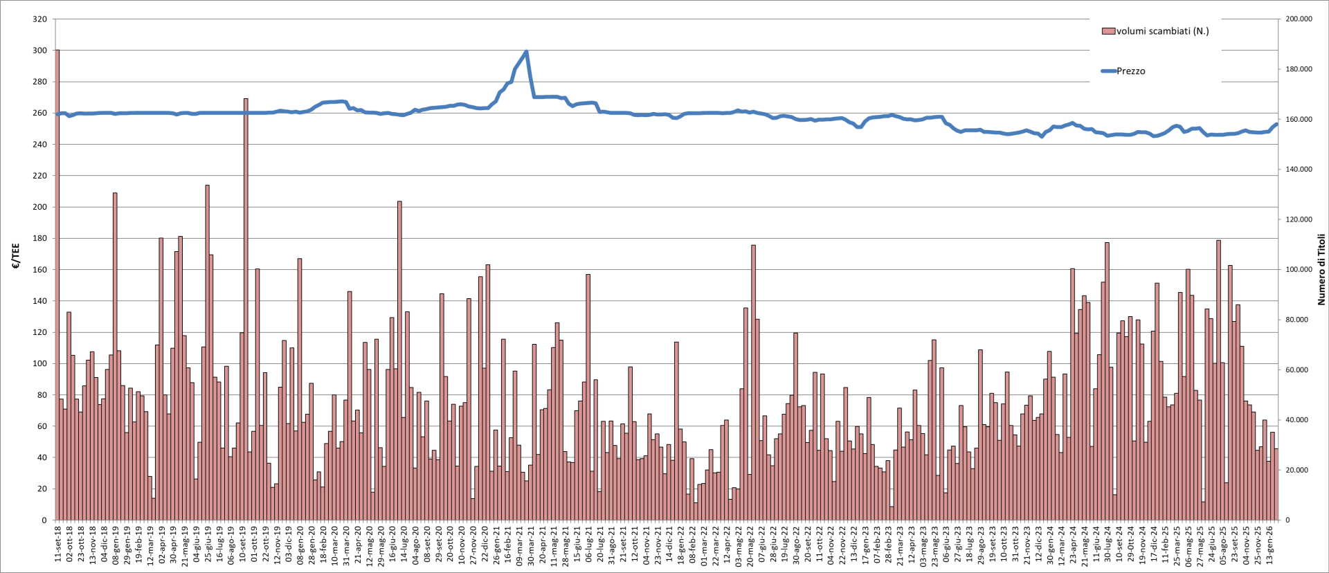 Si riporta di seguito la situazione aggiornata alla sessione del 10/02/2026 come riscontrabile dai dati del GME reperibili al sito Mercato TEE